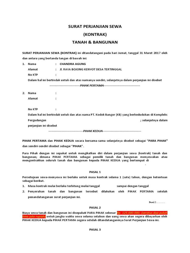 Contoh Surat Lengkap Contoh Surat Perjanjian Sewa Rumah Ruko Kios Bor