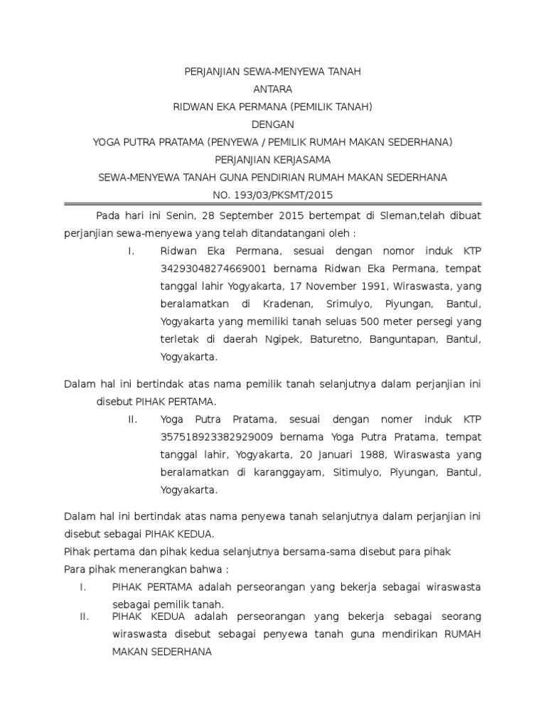 1 Surat Perjanjian Sewa Menyewa